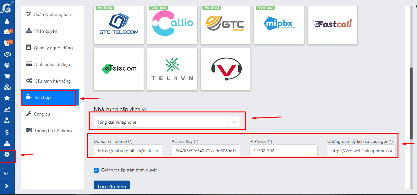 Hướng dẫn tích hợp tổng đài VCC - Vinaphone trên Getfly 4.0