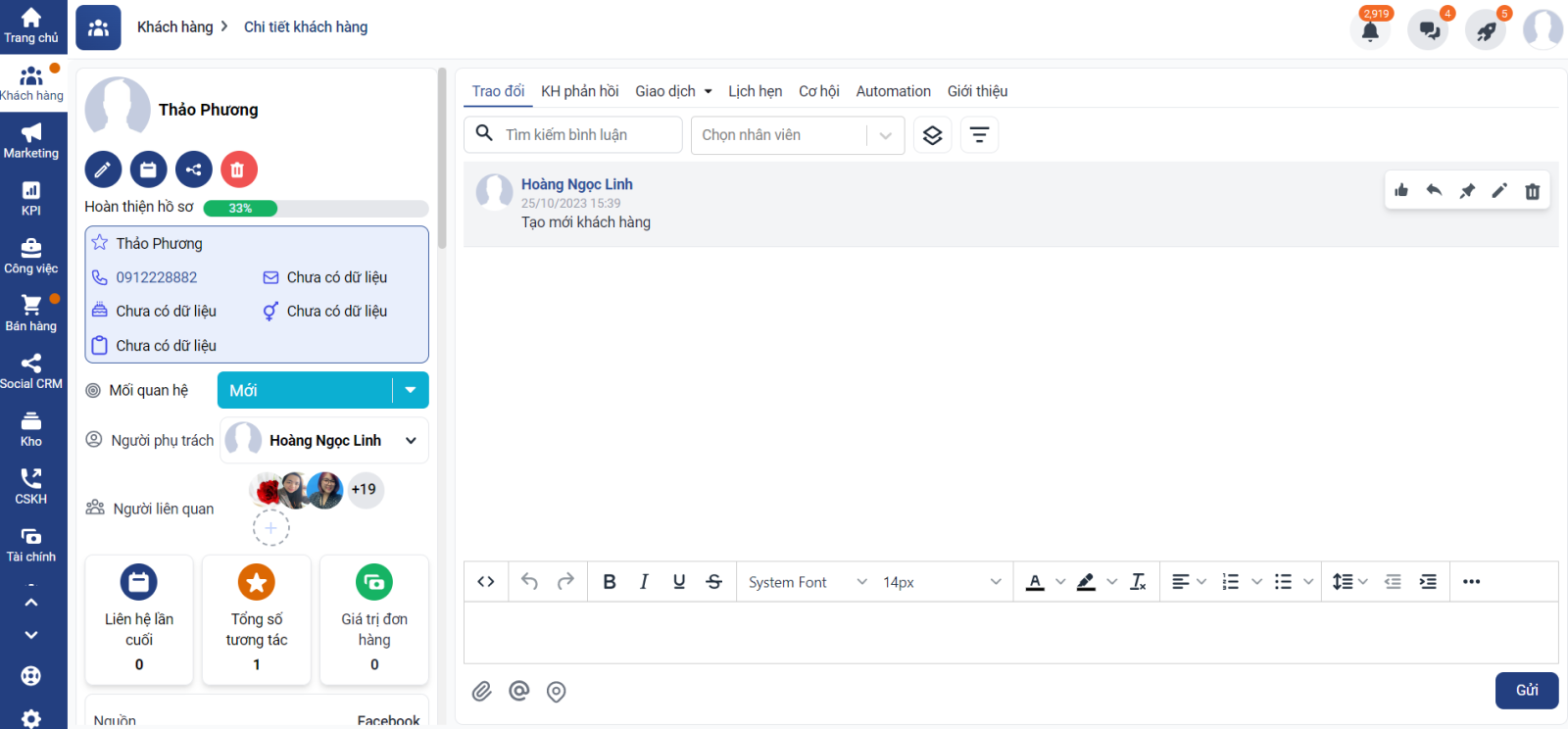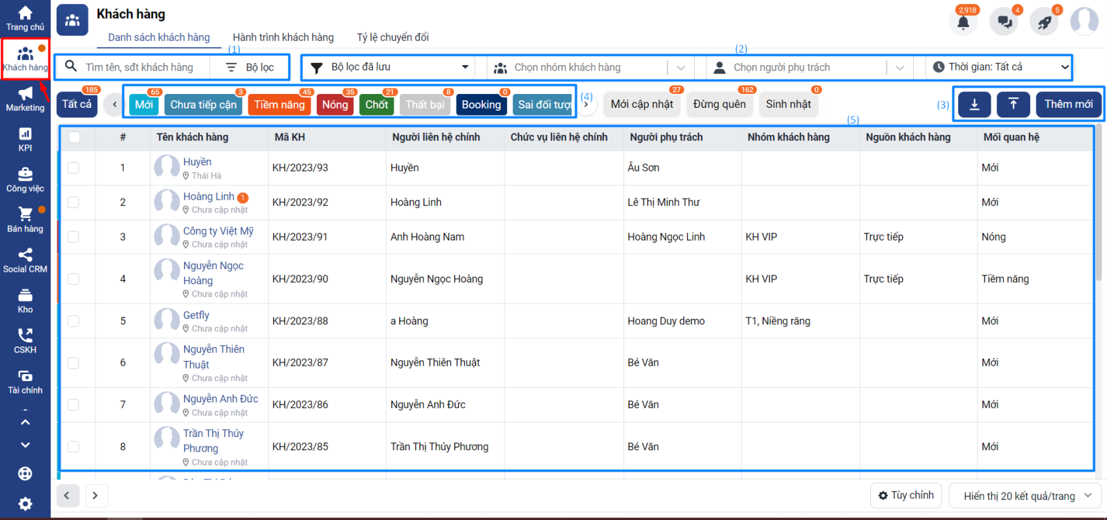 - Thêm mới: Giúp anh chị thêm khách hàng lên hệ thống