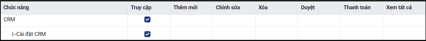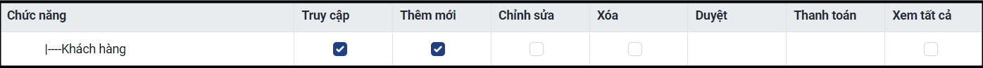 Để thêm mới khách hàng trên hệ thống, anh chị cần phải được phân quyền Truy cập và Thêm mới cho chức năng Khách hàng: