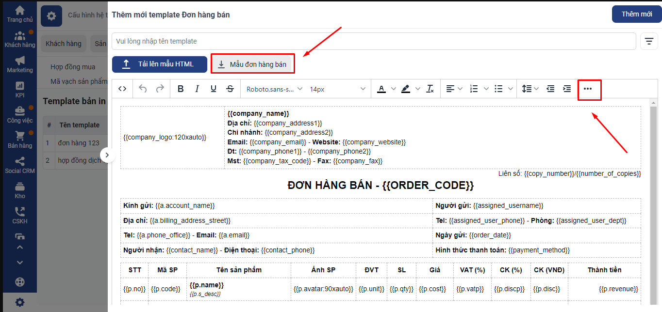 Bước 2: Chọn “Template bản in” → Thêm mới: