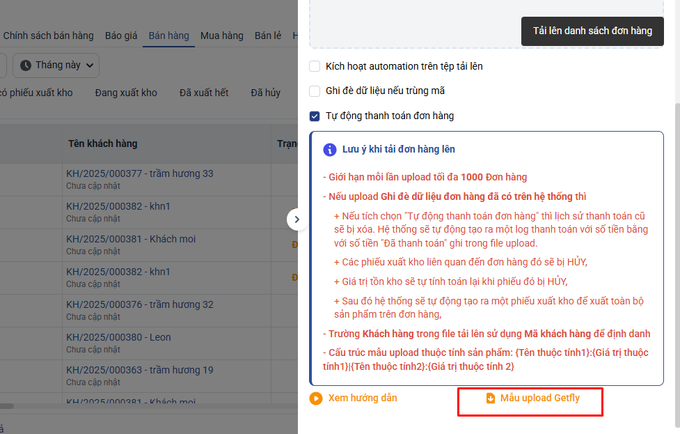 Bản này thông tin sẽ giống mẫu upload ban đầu của hệ thống, nhằm mục đích hỗ trợ cho việc ghi đè các đơn hàng nhanh chóng và dễ dàng hơn