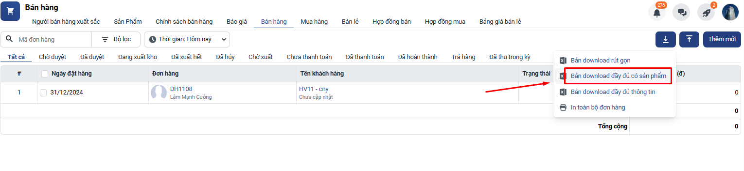 - Lựa chọn bản download đơn hàng đầy đủ sản phẩm