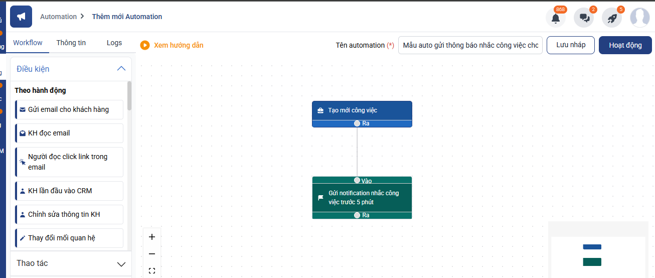 Bạn cần được phân quyền Truy cập và thêm mới Automation trên hệ thống
