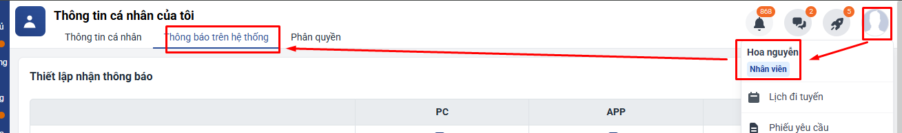 + Người gửi và người nhận thông báo bạn cũng có thể setup