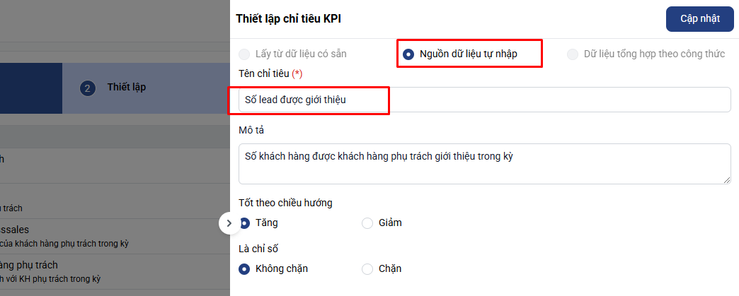 + Chỉ tiêu: Số lead được giới thiệu: Nguồn dữ liệu tự nhập