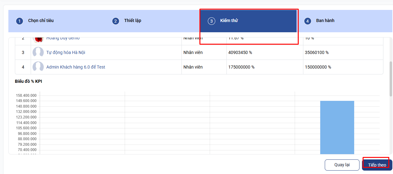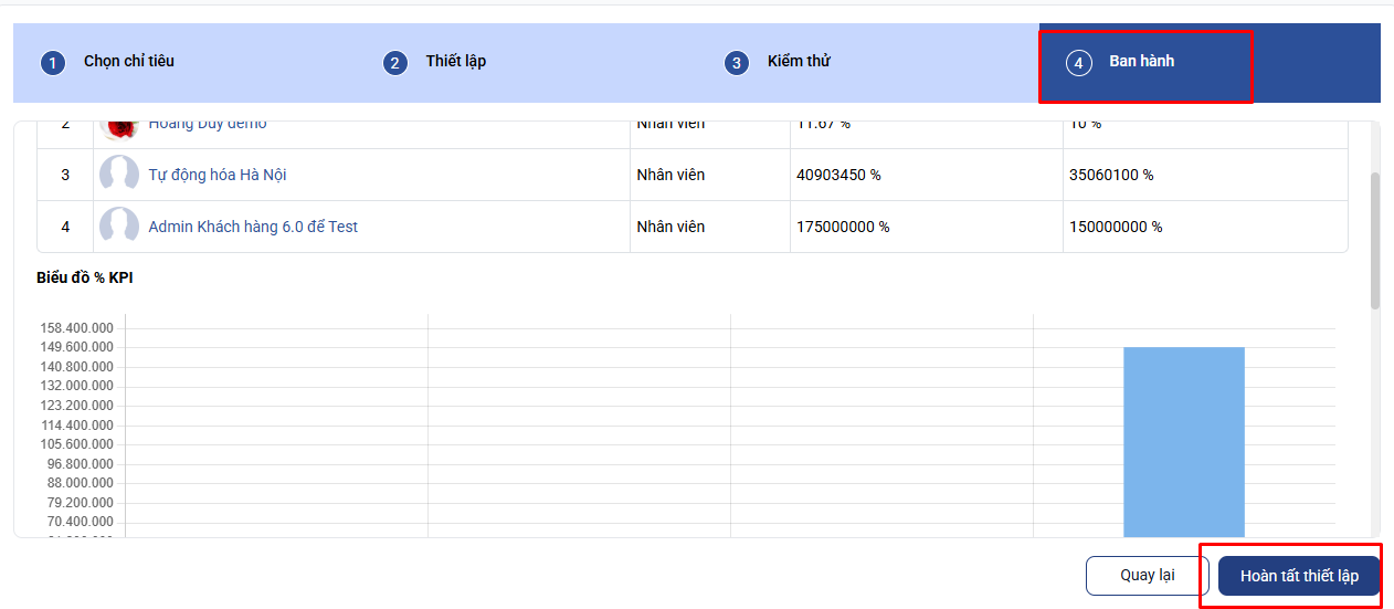 Bước 5: Bạn ấn tiếp theo và hoàn thành thiết lập để thêm mới bộ chỉ tiêu KPI dành cho nhân viên CSKH