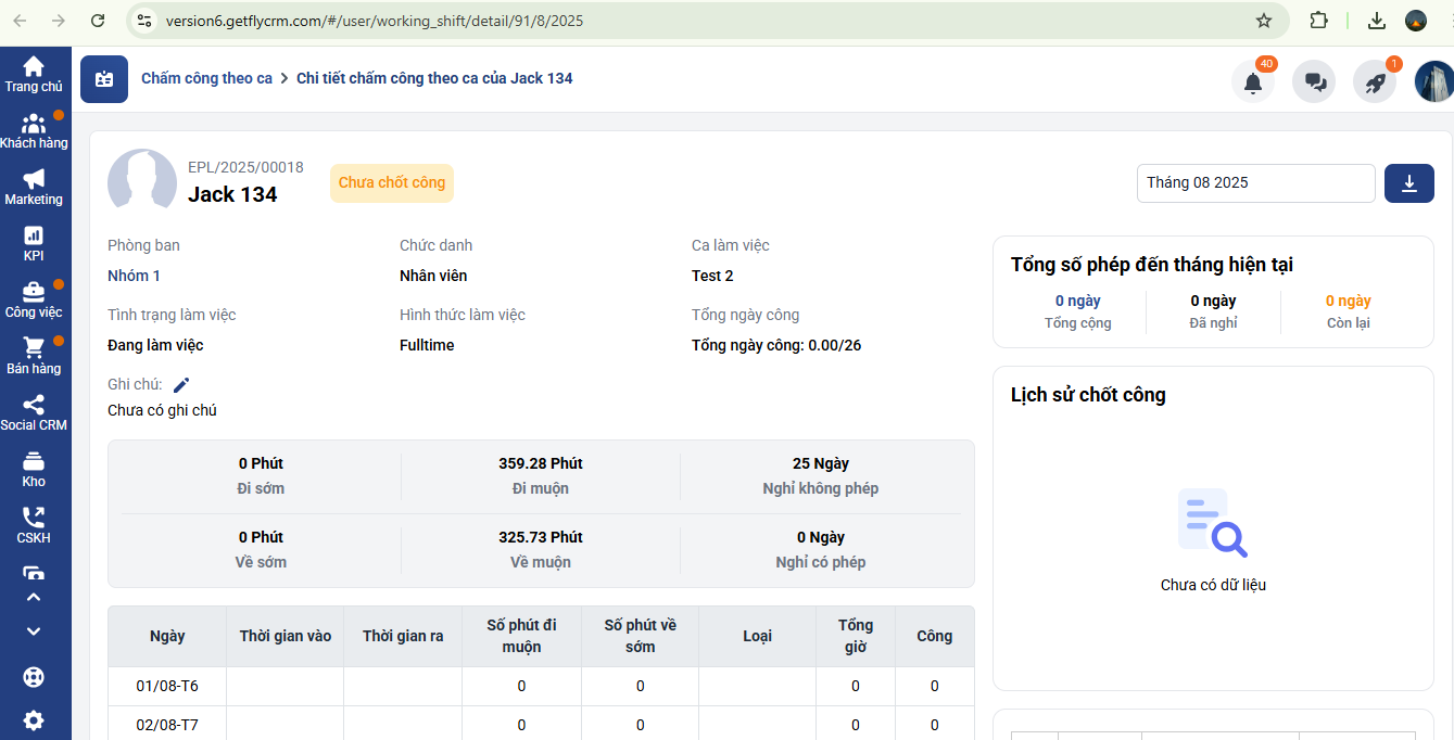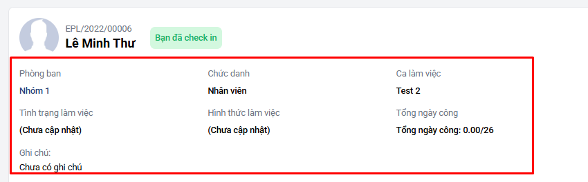 + Chưa chấm công: Khi nhân sự chưa chấm công vào.