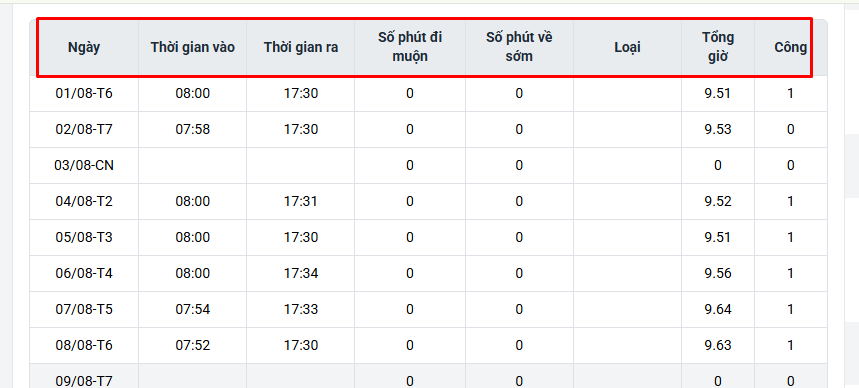 + Tổng ngày công: Lấy thông tin tổng ngày chấm công của nhân sự tính tới thời điểm hiện tại thời điểm lọc