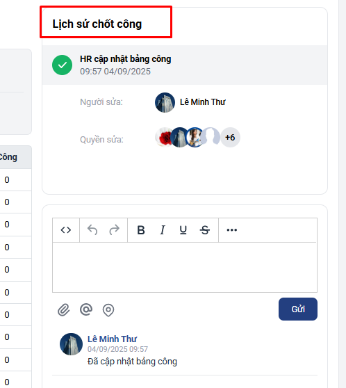 Hiển thị lịch sử chốt công của nhân sự và HR