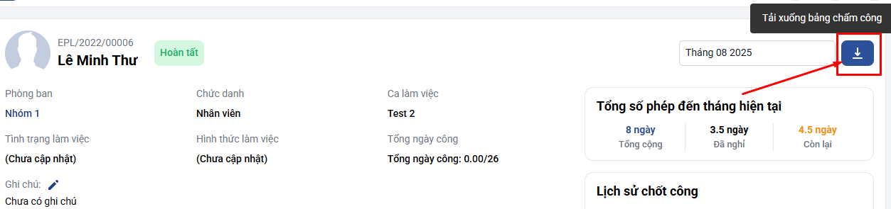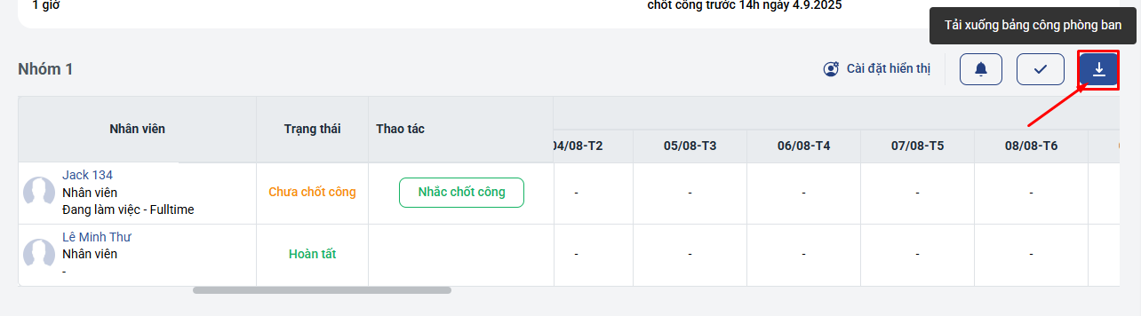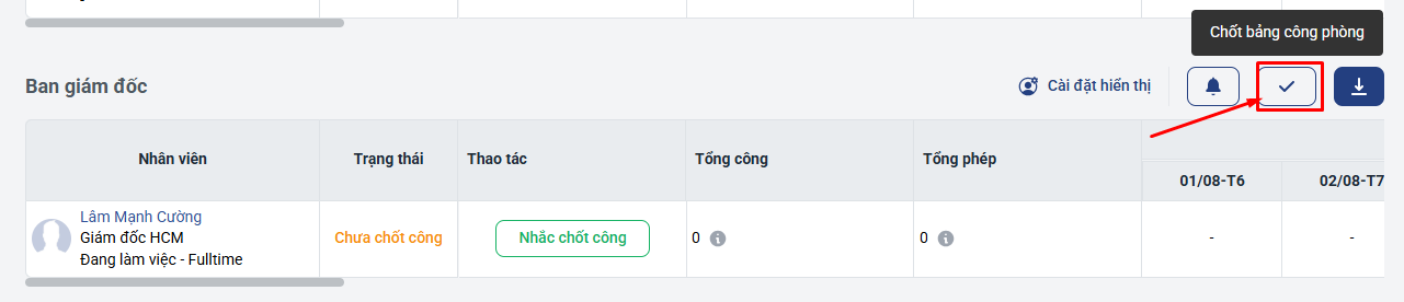 - Chốt công: hiển thị khi bên nhân sự đã chốt công bên bảng cá nhân