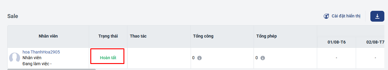 - Hoàn tất: trạng thái hiển thị khi HR ấn chốt công