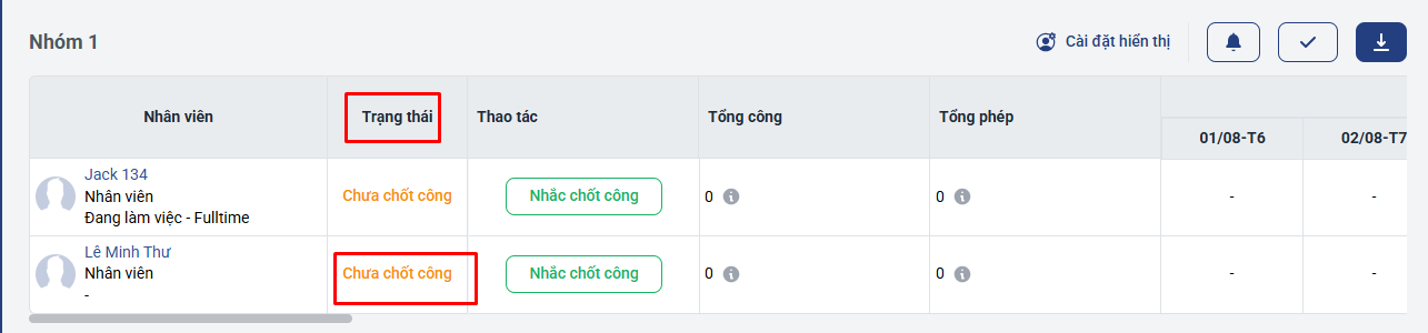 - Chưa chốt công: chưa có sự chốt công từ phía nhân sự