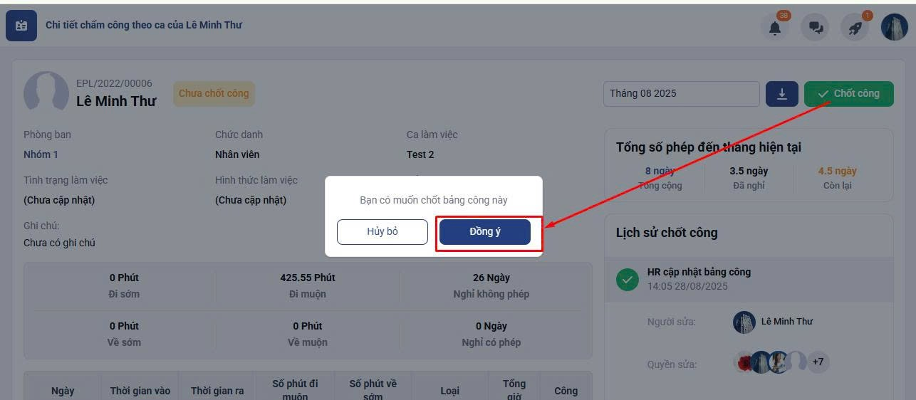 - Hệ thống sẽ tự động chốt công cuối tháng nếu không có chỉnh sửa.