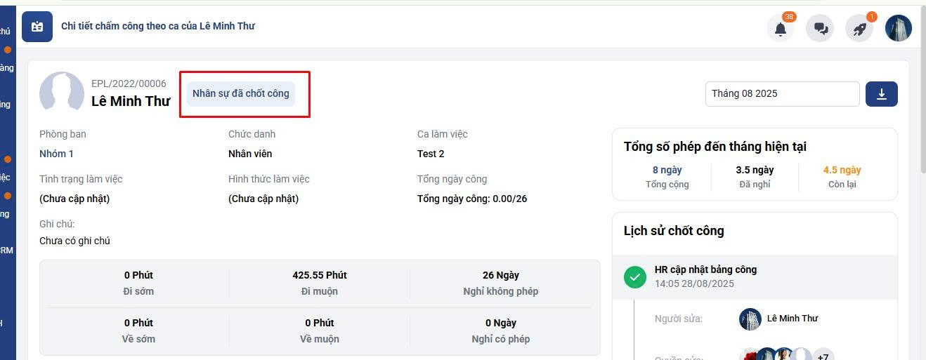 - Nếu HR sửa thông tin, nút chốt công cá nhân sẽ xuất hiện lại.