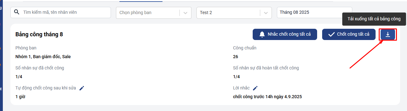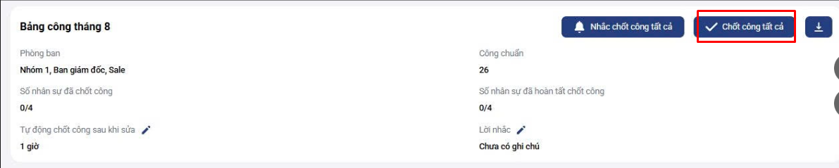 + Chốt công Tất cả: Chốt công cho toàn bộ công ty.