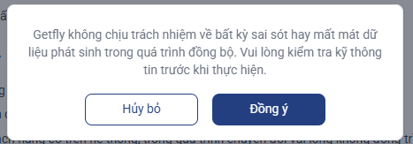 Getfly không chịu trách nhiệm về bất kỳ sai sót hay mất mát dữ liệu phát sinh trong quá trình đồng bộ. Vui lòng kiểm tra kỹ thông tin trước khi thực hiện.