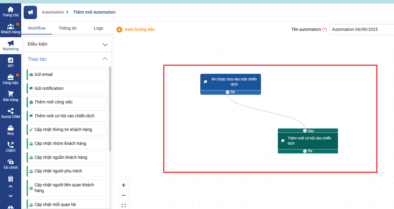 - Khi đó, Automation sẽ tự động chạy → tạo cơ hội trong Chiến dịch B với tên cơ hội được đặt theo cấu hình bạn đã chọn.