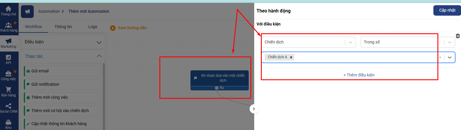 Điều kiện: Khi khách hàng được thêm mới vào Chiến dịch A.