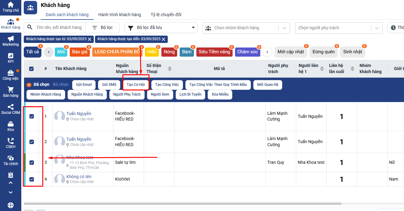 4. Thêm khách hàng hàng loạt vào Chiến dịch A