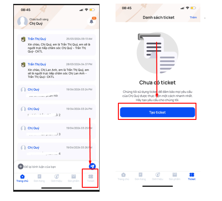 - Tại màn hình chính, chọn Ticket → Tạo ticket.