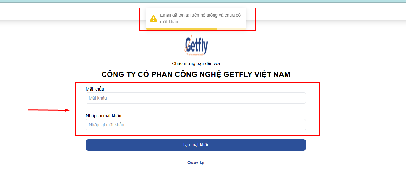 - Nếu email hợp lệ nhưng chưa có mật khẩu (đăng nhập lần đầu), hệ thống sẽ yêu cầu bạn tạo mật khẩu mới để kích hoạt