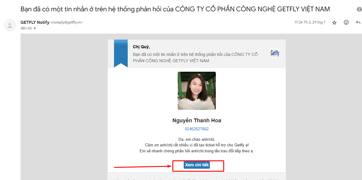 - Bạn có thể theo dõi tiến độ xử lý ticket trực tiếp trong hệ thống và trao đổi với chuyên viên hỗ trợ ngay tại đó.