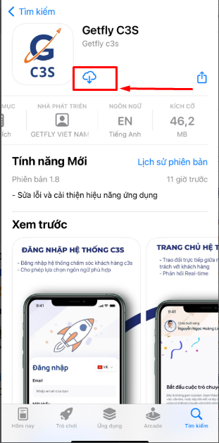 - IOS: Vào App Store, tìm kiếm Getfly C3S → Tải về.