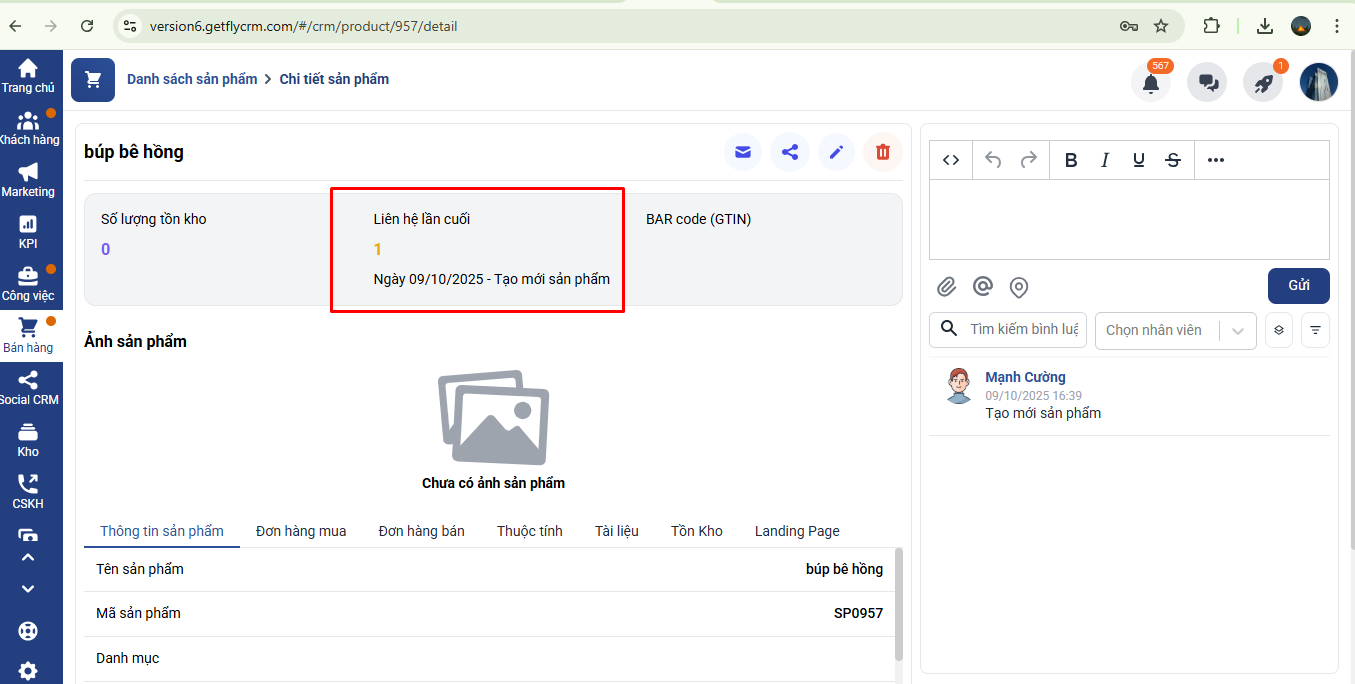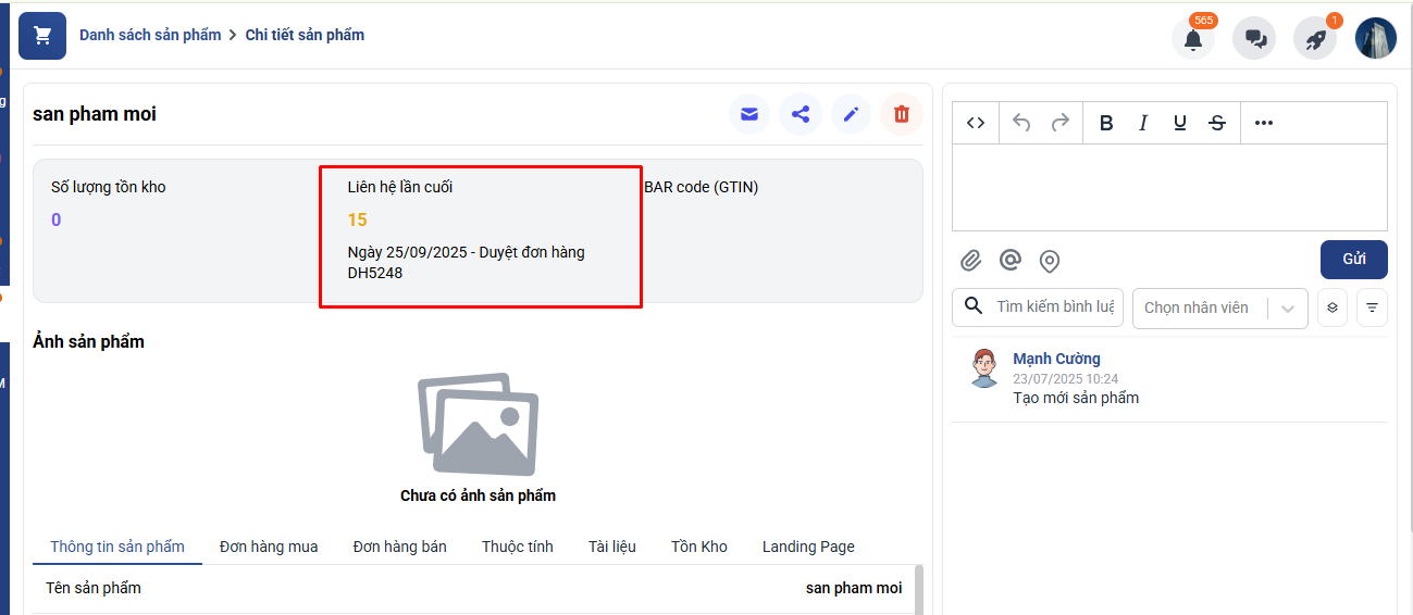 Liên hệ lần cuối trong Sản phẩm trên CRM