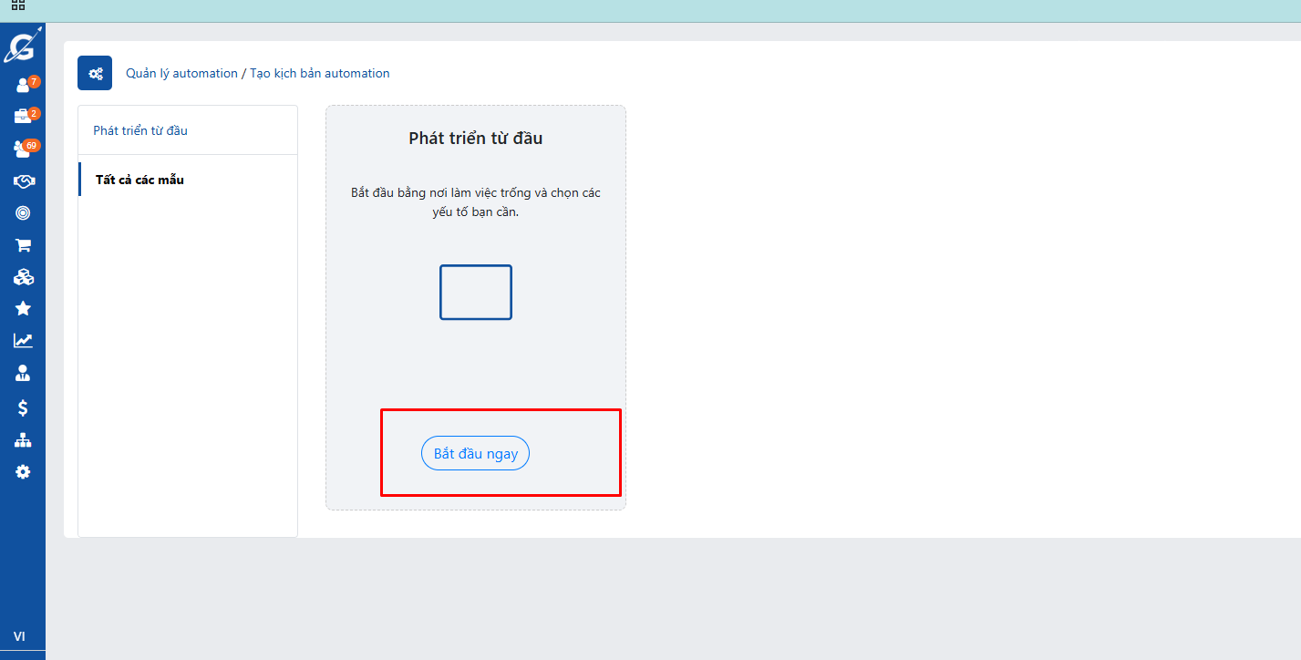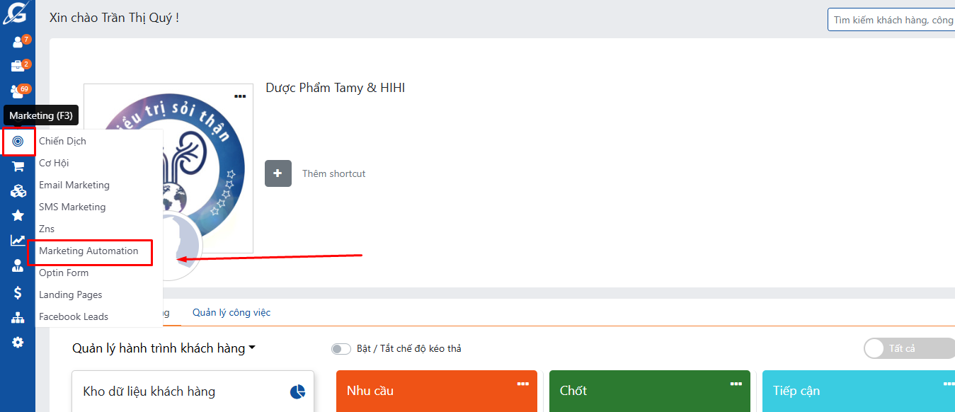 Tiếp theo, chọn Marketing Automation để mở giao diện quản lý các kịch bản tự động hóa.
