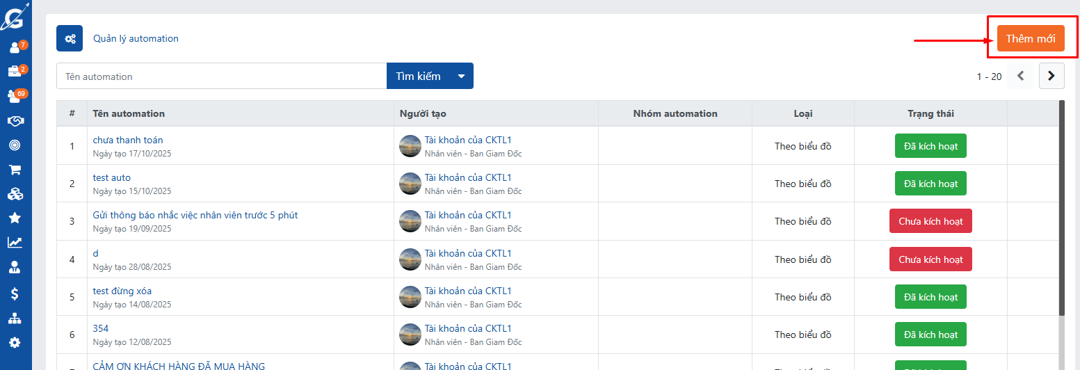 Nhấn “Thêm mới” để bắt đầu tạo một kịch bản mới.