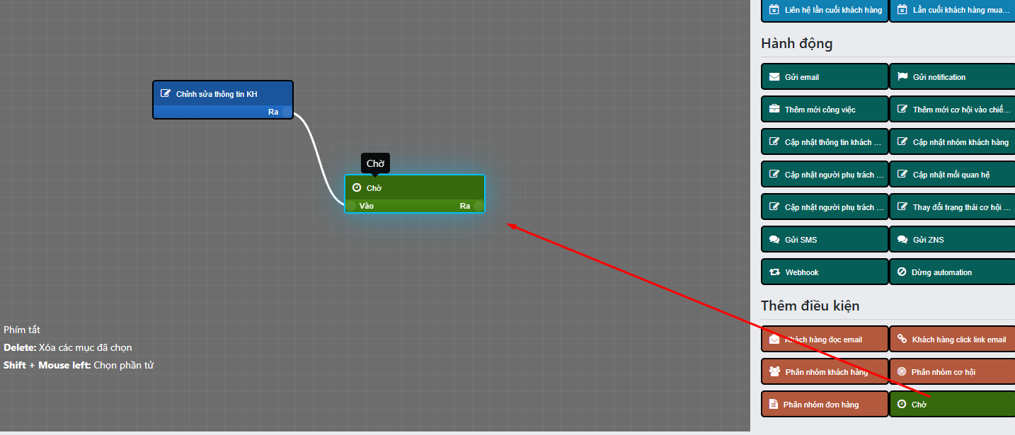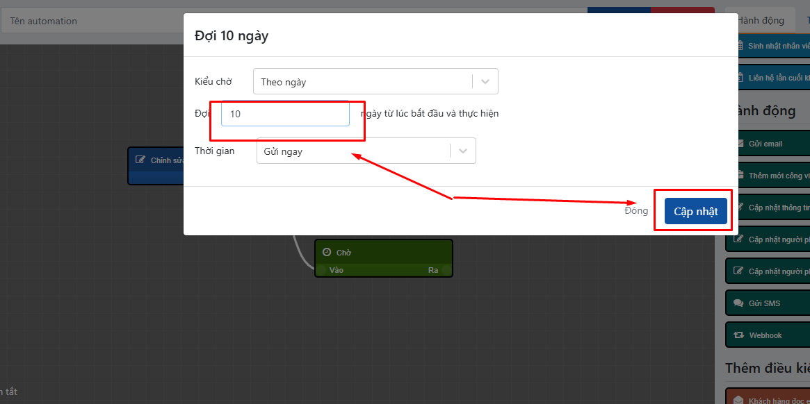 Click vào khối “Chờ” và nhập thời gian chờ là 10 ngày.