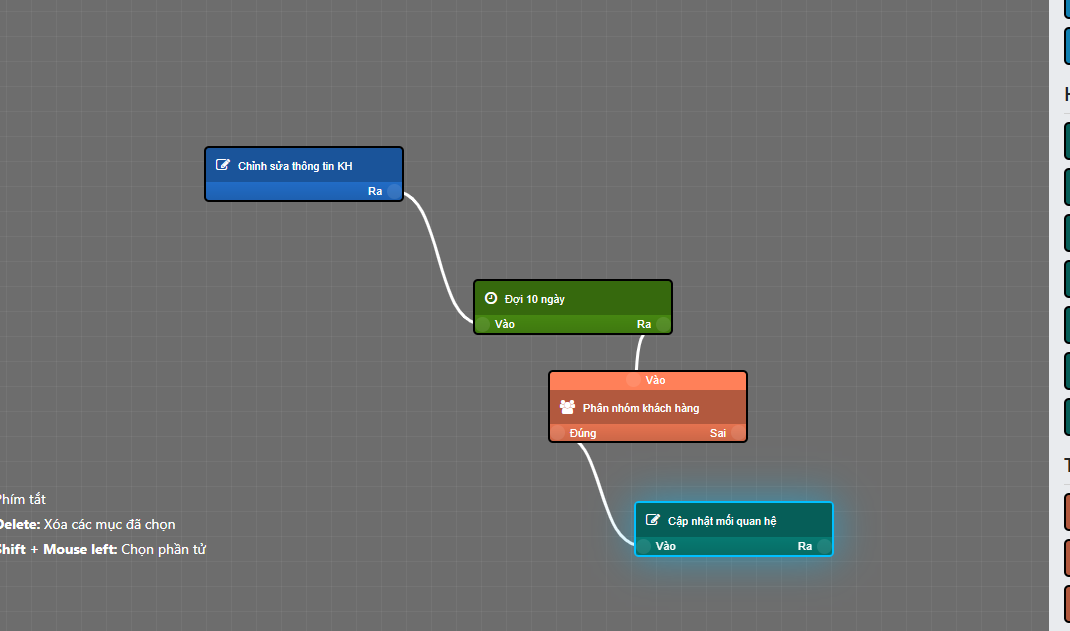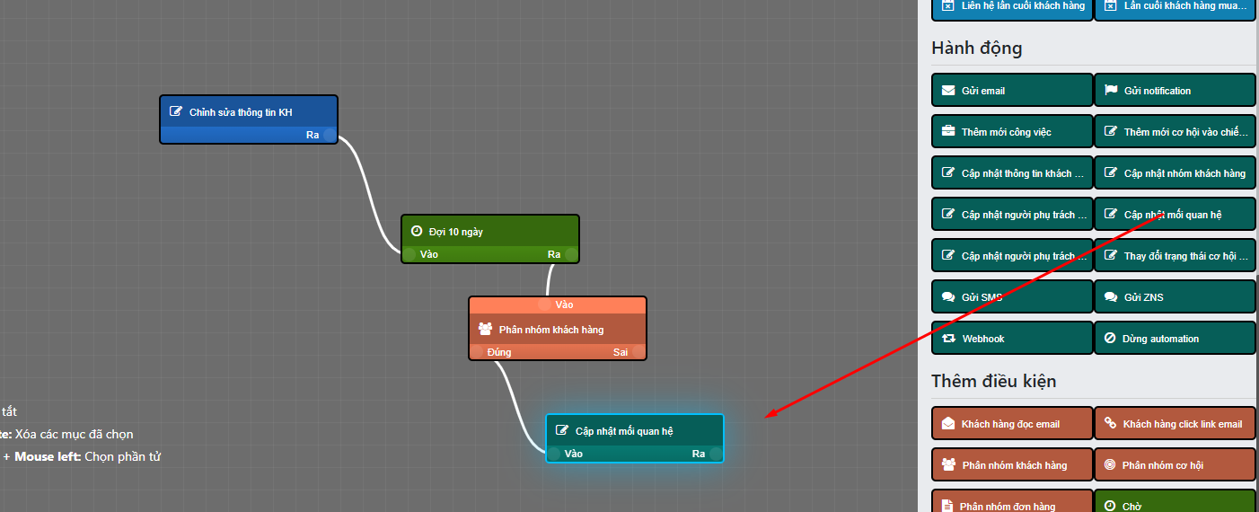 Kéo khối “Hệ quả cập nhật mối quan hệ” vào cuối cùng trong chuỗi thao tác.