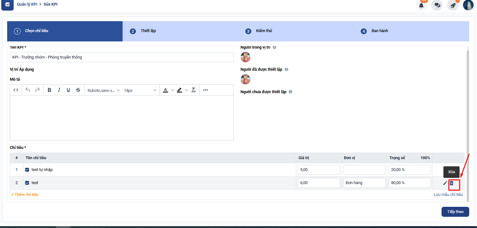 Để sắp xếp lại theo thứ tự mong muốn, bạn vui lòng xóa và tạo lại các chỉ tiêu KPI theo đúng thứ tự cần hiển thị nhé.