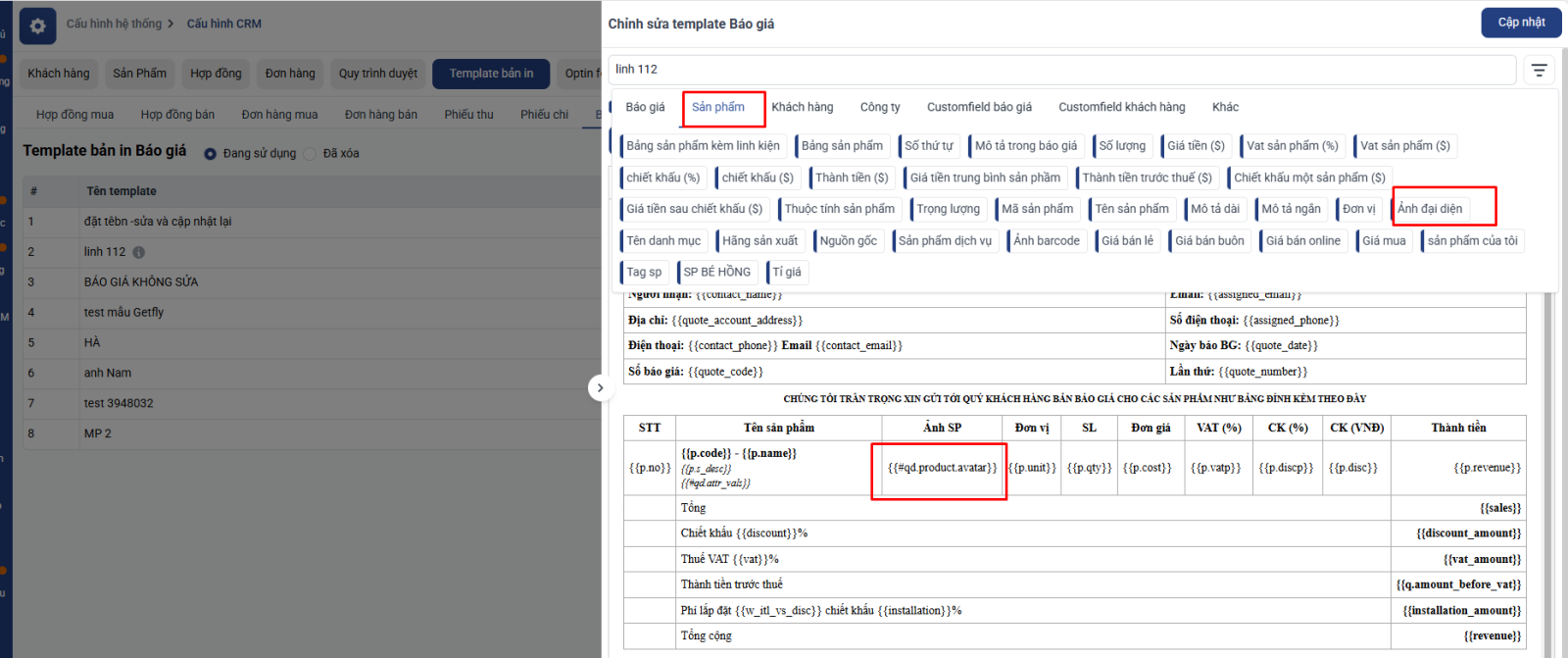 Hướng dẫn chèn biến ảnh sản phẩm vào bản in báo giá và điều chỉnh kích thước hiển thị