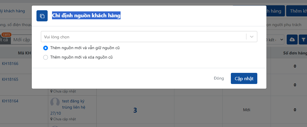 - Thêm nguồn mới và xóa nguồn cũ, có nghĩa khách hàng sẽ được chuyển sang nguồn mới