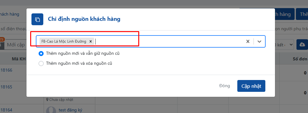5. Bạn ấn Cập nhật để hoàn tất việc thay đổi nguồn khách hàng