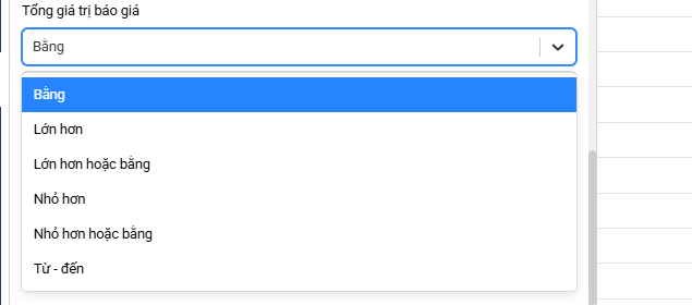 Tôi có thể lọc báo giá theo giá trị của báo giá được không?