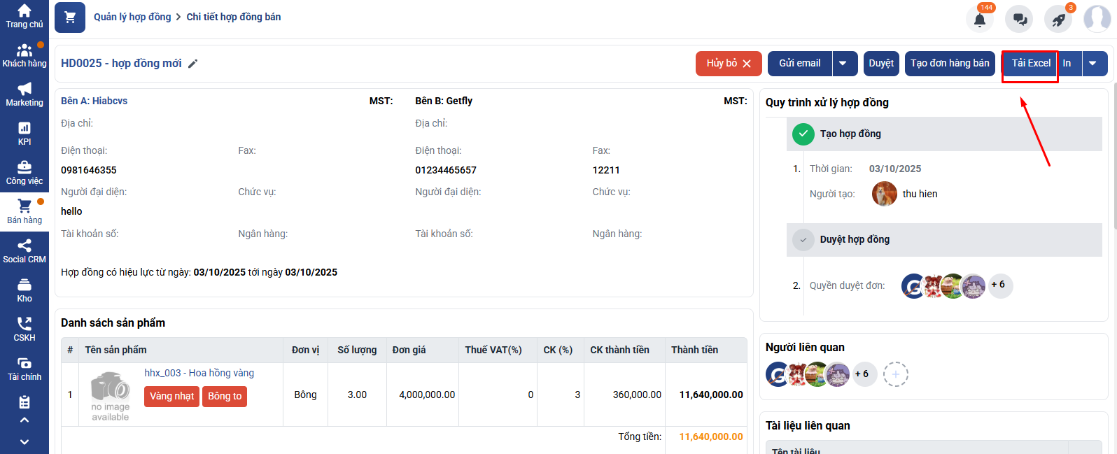 - Nếu bạn có nhu cầu tải Excel / PDF từng hợp đồng: bạn chỉ cần có quyền xem hợp đồng