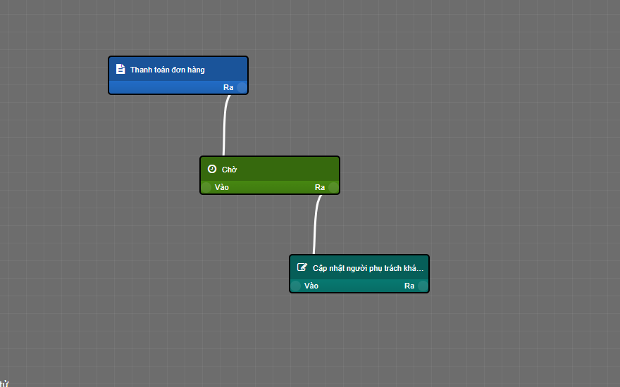 - Nối ra của khối chờ với vào của hệ quả cập nhật người phụ trách khách hàng