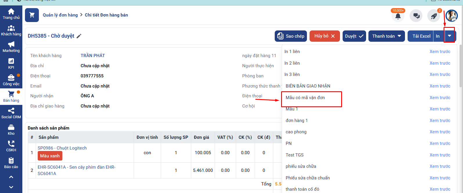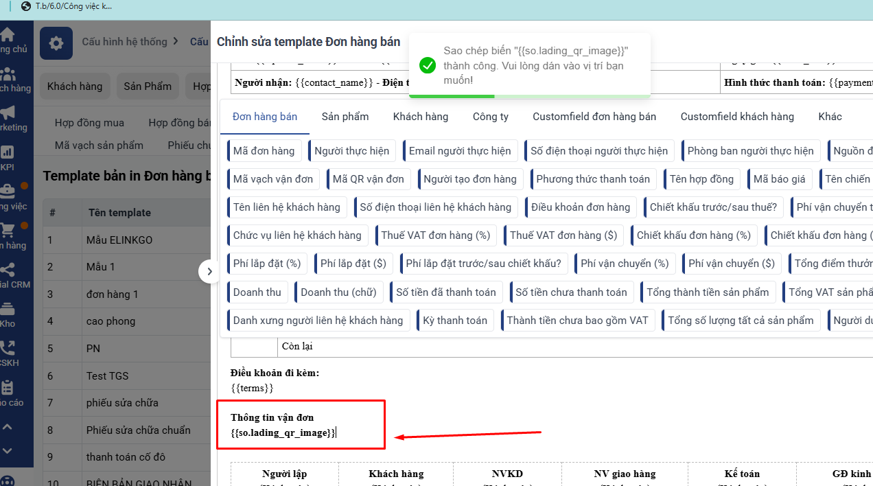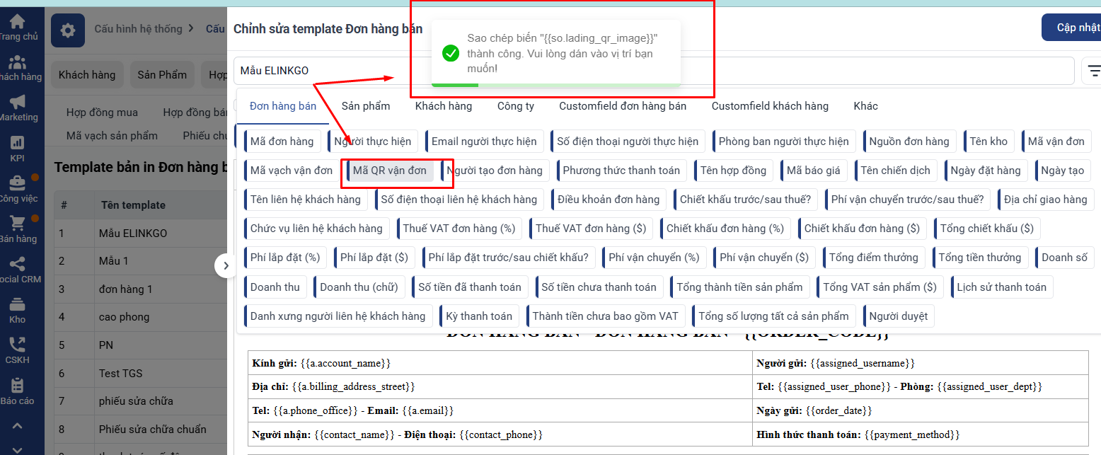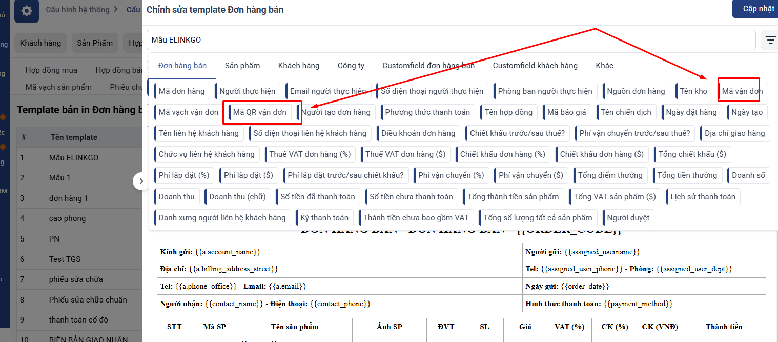 Hướng dẫn chèn mã QR vận đơn và mã vận đơn vào bản in đơn hàng trên Getfly CRM