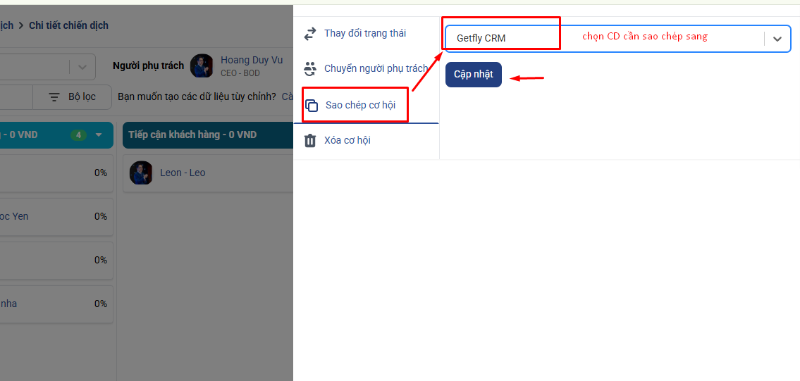 Sao chép cơ hội của chiến dịch A sang chiến dịch B trên Getfly 6.0