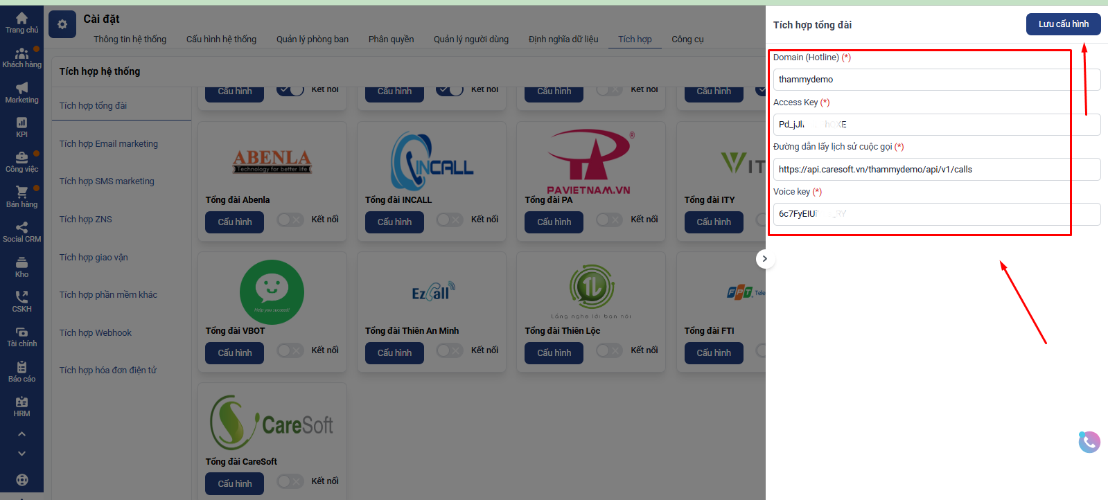 Hướng dẫn tích hợp tổng đài CareSoft trên Getfly trên Getfly 6.0