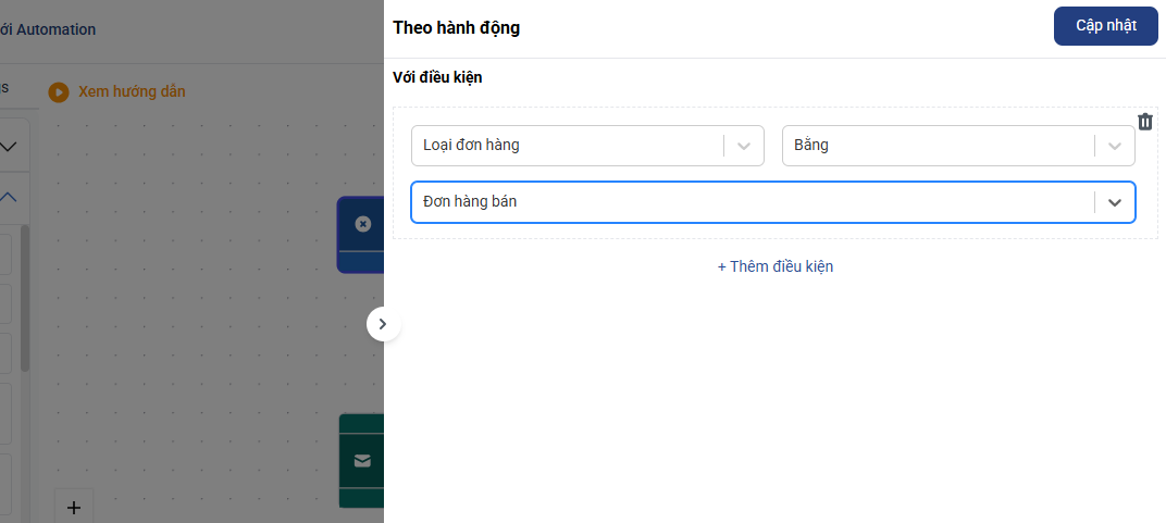 Bước 2: Bạn chọn hành động tạo Hủy đơn hàng, và hệ quả là Thêm mới Email