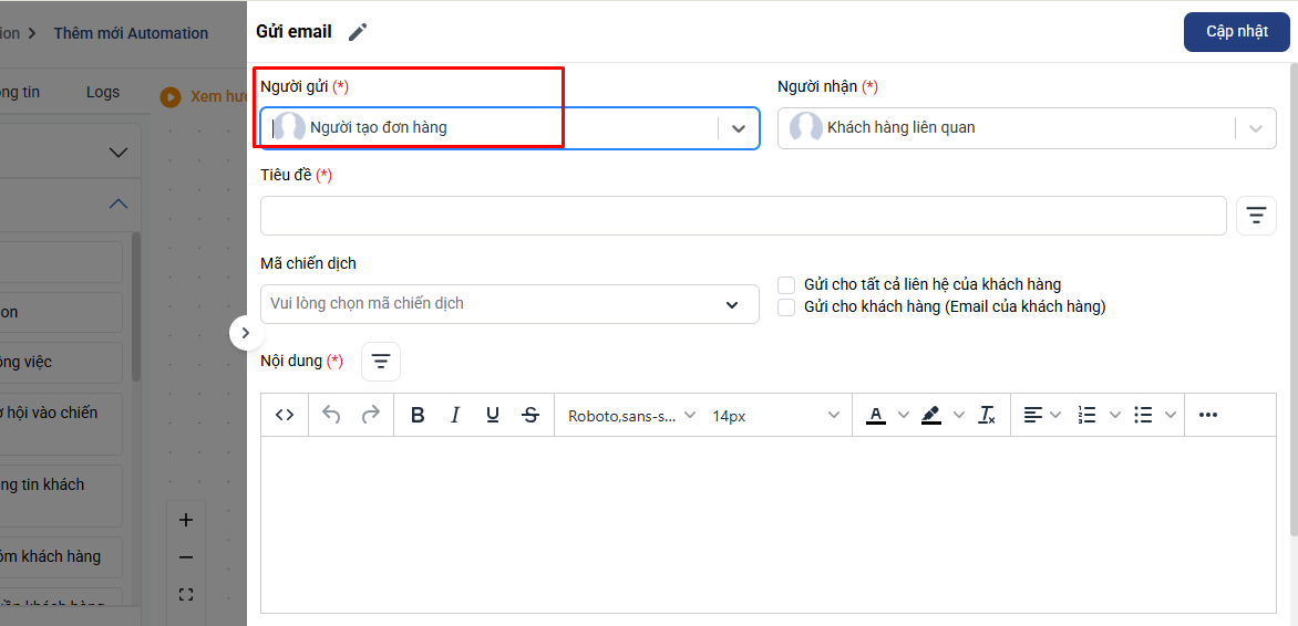 Hướng dẫn người tạo đơn hàng gửi mail thông báo cho khách hàng khi đơn hàng bị hủy trên Getfly CRM