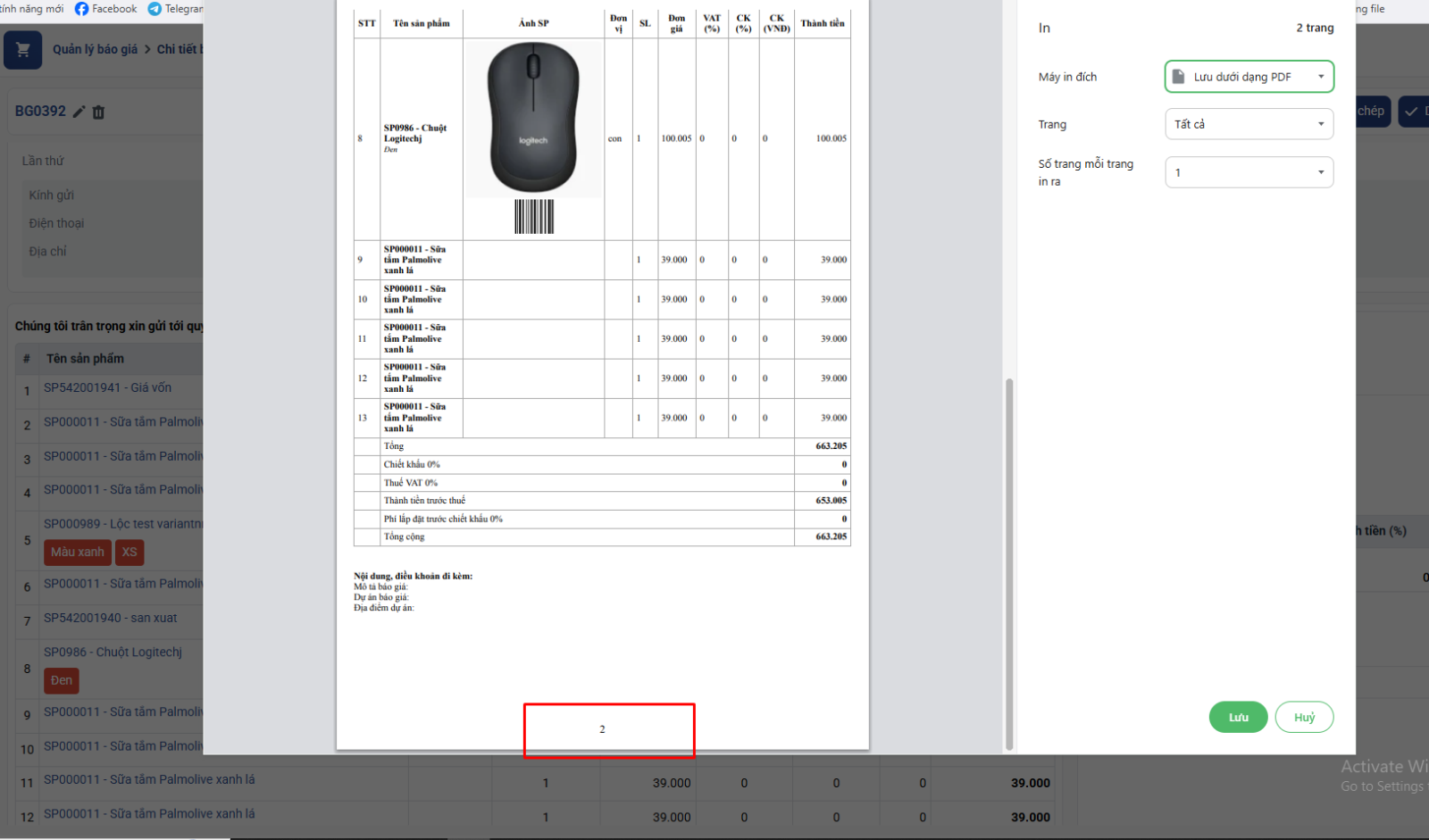 Để đánh số trang trong bản in báo giá tự tạo trên CRM, các bạn thao tác như sau: