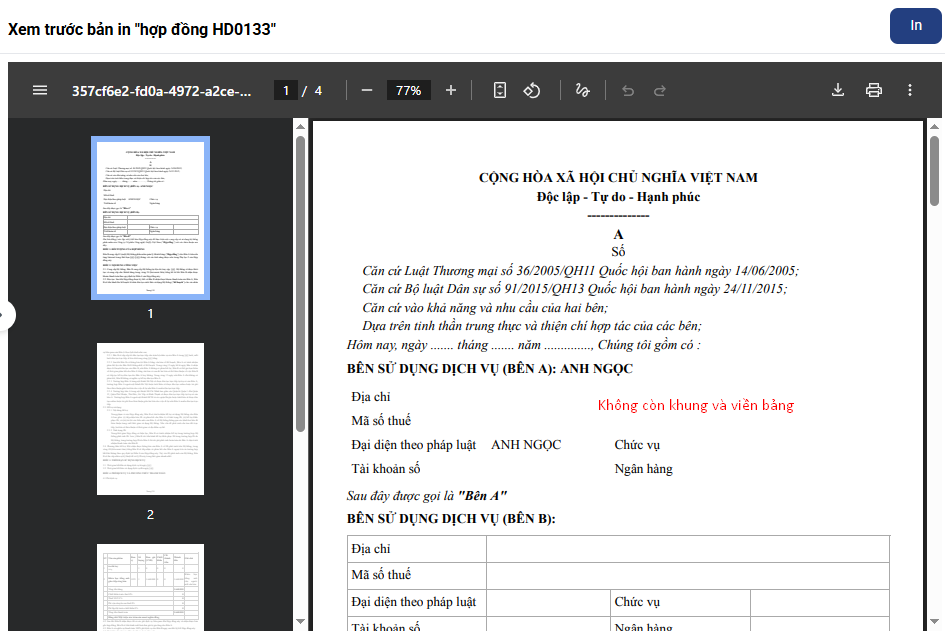 Sau khi chỉnh sửa bạn quay lại bản in để kiểm tra.