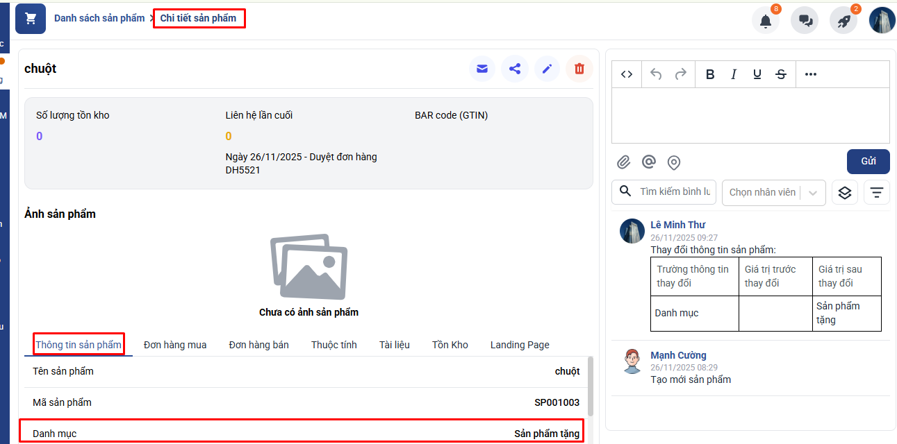 Thao tác: Bạn vào bán hàng → Sản phâm → Chi tiết sản phẩm → Danh mục