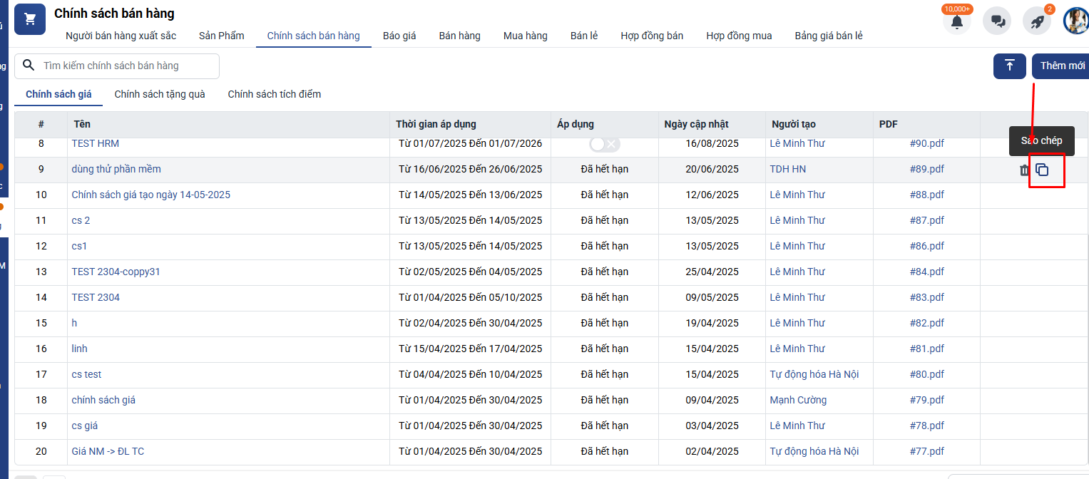 ? 4. Cách tạo nhanh chính sách giá mới bằng chức năng sao chép