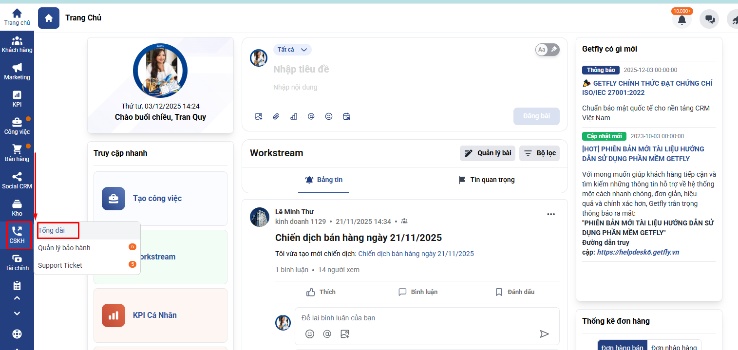 CÁCH 1: Thao Tác Từ Mục Tổng Đài (Call Center)