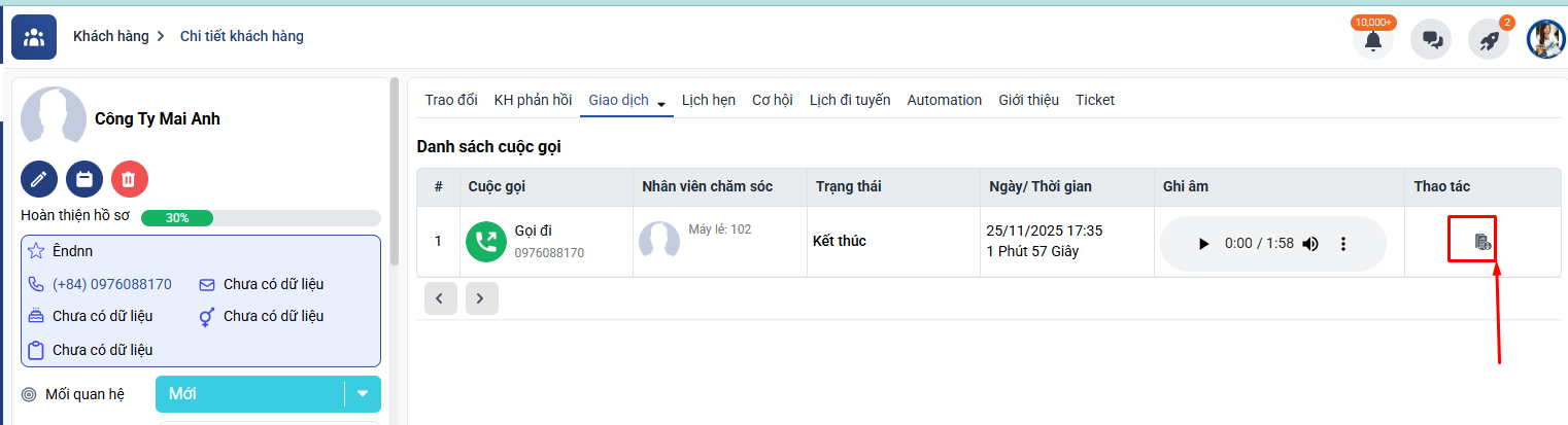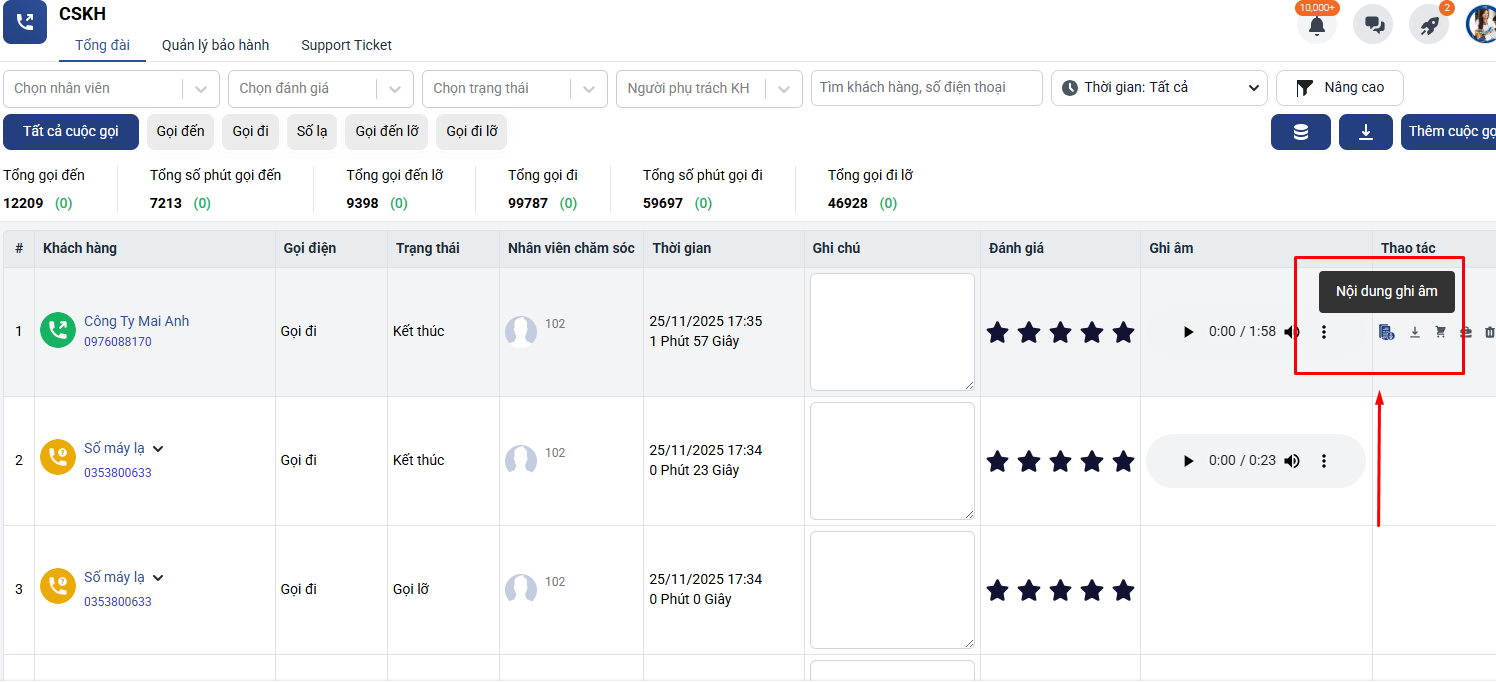 - Minh Bạch Hóa Thông Tin: Nội dung cuộc gọi được số hóa và lưu trữ rõ ràng, xóa bỏ mọi tranh cãi nội bộ về việc nhân viên đã tư vấn hay phản hồi khách hàng như thế nào.